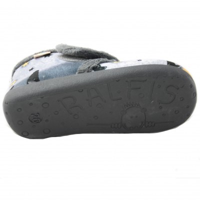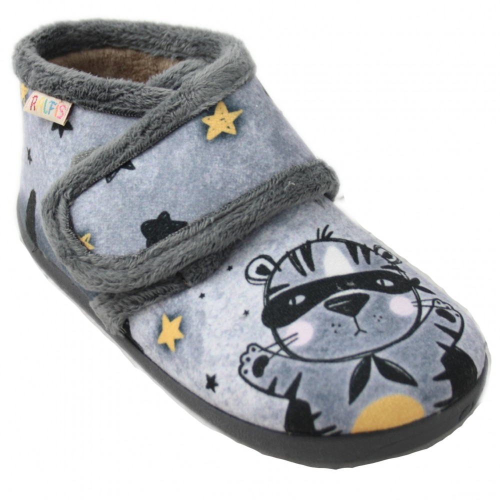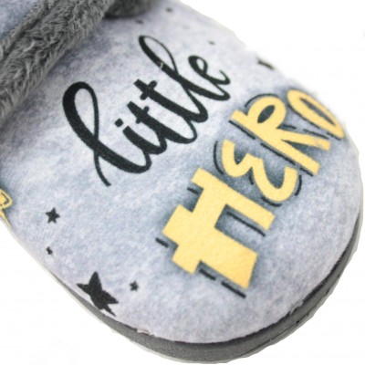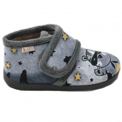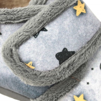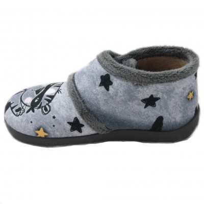 Cabrera 6269 - Sabatilles De Estar Per Casa Velcro Bota Grisa Amb Gat, Estels i Litlle Hero